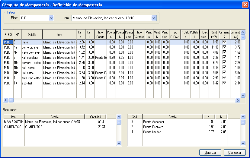 • Estudio pormenorizado de cada item de la obra: hormigon, mamposteria, estructura, etc.