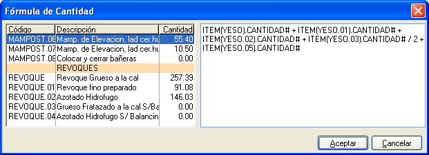 Para los items de hormigón o revoques se procede de la misma forma, pero hay otra clase de items que dependen de valores o fórmulas, como el caso de los items de pintura que utilizan los resultados del cómputo de items de yeso.