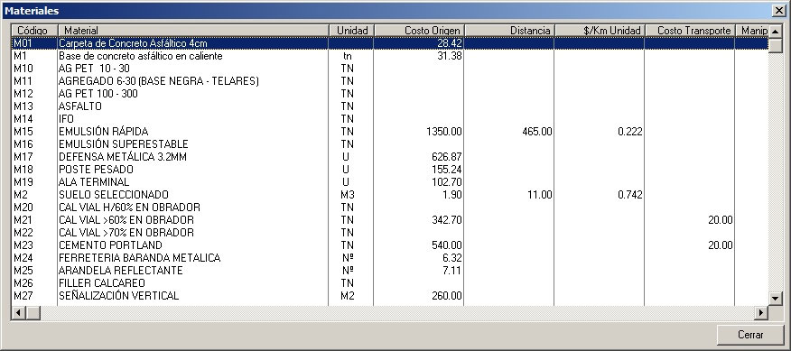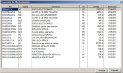 El otro archivo importante en la prestacion es el archivo de materiales en el cual se definen las distintas variables de los mismos: codigo, descripcion, costos, fletes, etc. La modificacion de los costos de los mismos provocaran la modificacion proporcional de aquellas tareas que lo contengan. Ademas estaremos en condiciones de comparar la cantidad de cada material presupuestado contra la cantidad efectivamente consumida.
