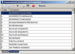 Se deben codificar los distintos motivos de parada de manera de poder cuantificar la incidencia de cada uno de ellos, con el fin de poder analizar las desviaciones provocadas por las mismas en los distintos rendimientos y en las estimaciones de tiempos para cada tarea. La valoracion de las paradas por desperfectos puede ser motivo de la puesta en reparacion de un equipo cuya performance no este de acuerdo a lo aceptable por sus caracteristicas.