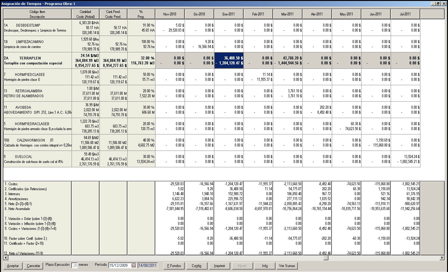 Una funcion interesante dentro del modulo de programacion de obra es que se puede observar el flujo de fondos que origina el programa de produccion, separado por cada item de la obra, mes por mes. Denuros. Con toda esta informacion se puede saber rapidamente en que situacion financiera esta o estara la obra.tro del Flujo de Fondos se pueden consultar los importes referidos a los costos y a las certificaciones. Tambien se puede incluir informacion de interes, amortizaciones, variacion del dolar y variacion por inflacion, para hacer estimaciones mas precisas en los meses futuros. Con toda esta informacion se puede saber rapidamente en que situacion financiera esta o estara la obra.