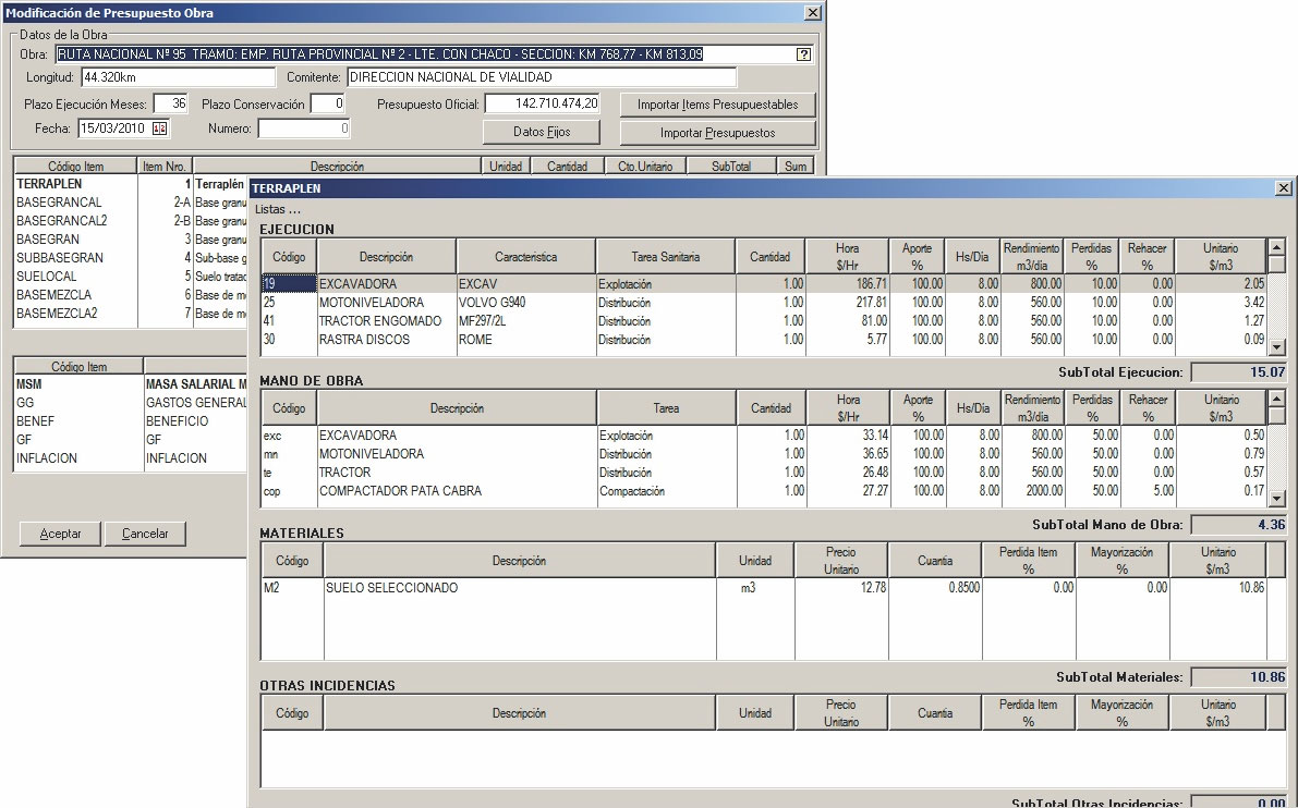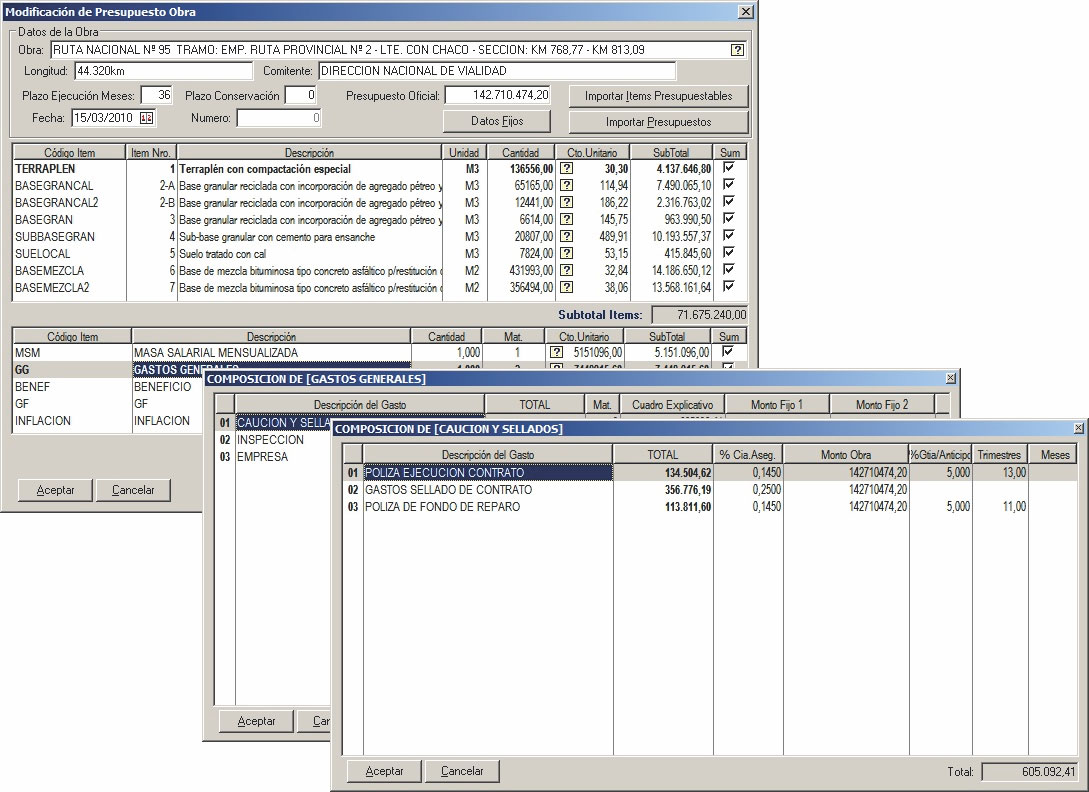 El aspecto tecnico, en el cual se enlazan las distintas tareas a ejecutar, se evalua desde el punto de vista de un perfecto costeo de cada una de ellas, evaluando equipos, materiales, mano de obra, tiempos de ejecucion, etc. al cual se afecta de un indice que proviene de una pormenorizada valoracion de los G. Generales, permitiendo evaluar distintas alternativas tecnicas para seleccionar la mas viable desde el punto de vista economico y financiero.
