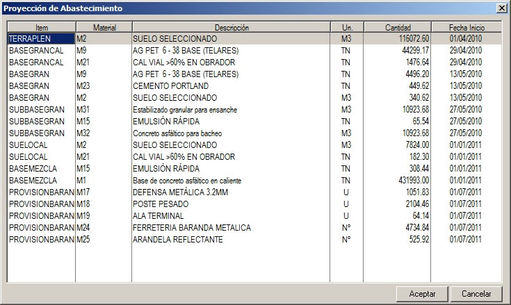 • Emision de la proyeccion futura de abastecimientos futuros.