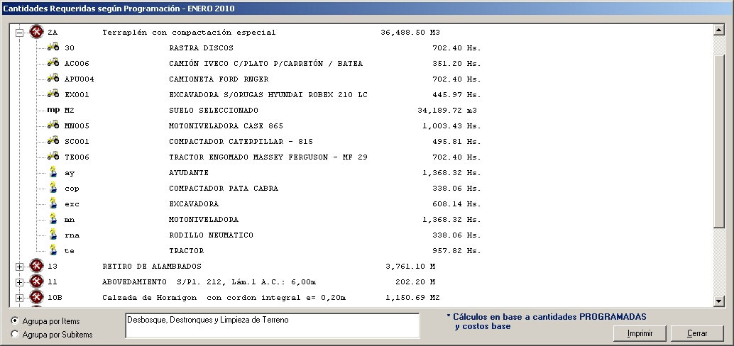 La base de todo el calculo esta en lo costeado aunque a partir de ahi se deben tomar decisiones en cuanto a los tiempos de utilizacion de los recursos y los materiales. En lo que respecta a los recursos se debe programar el uso de los equipos y maquinarias. Estas pueden ser de nuestra propiedad o alquiladas. Se debe verificar la disponibilidad de cada equipo en el momento que lo necesito en la obra (puede estar en otra o no haber disponibilidad para rentarlo).