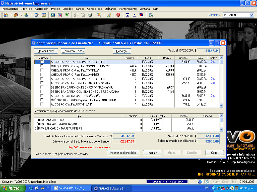 Módulos de auditoría que permiten el rápido control de la operatoria general administrativa y del flujo de valores del día. Control automático del crédito asignado a c/cliente, computando el saldo en cuenta corriente conjuntamente con los valores del mismo que todavía no se acreditaron.