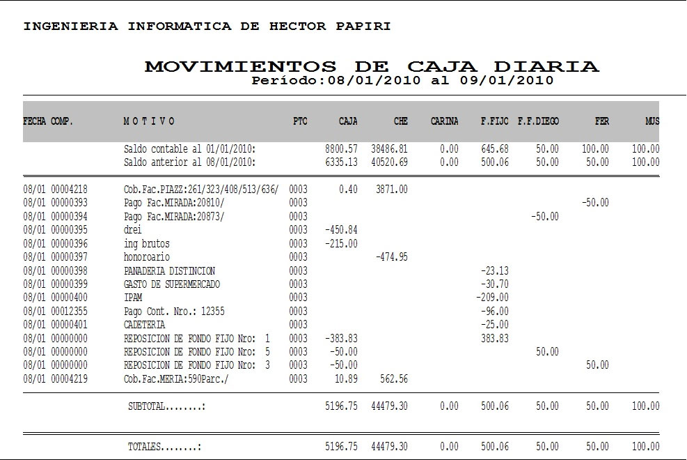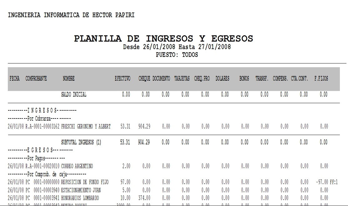 Listado de cheques en cartera y de cheques ingresados o egresados, por día. Detalle del concepto de ingreso y egreso de c/ cheque para su posterior búsqueda selectiva.