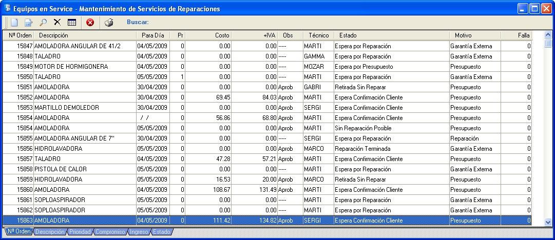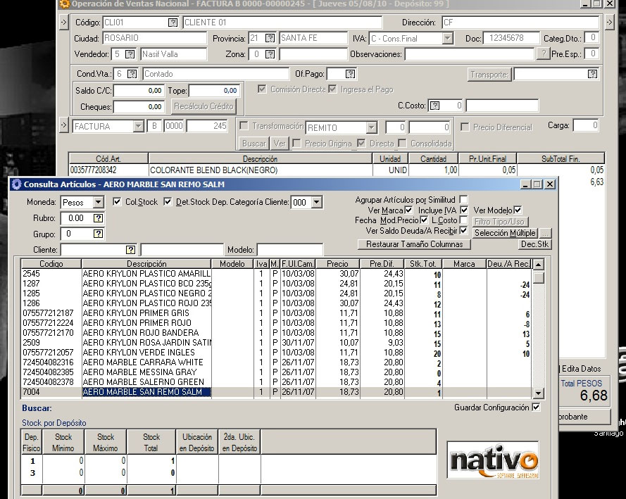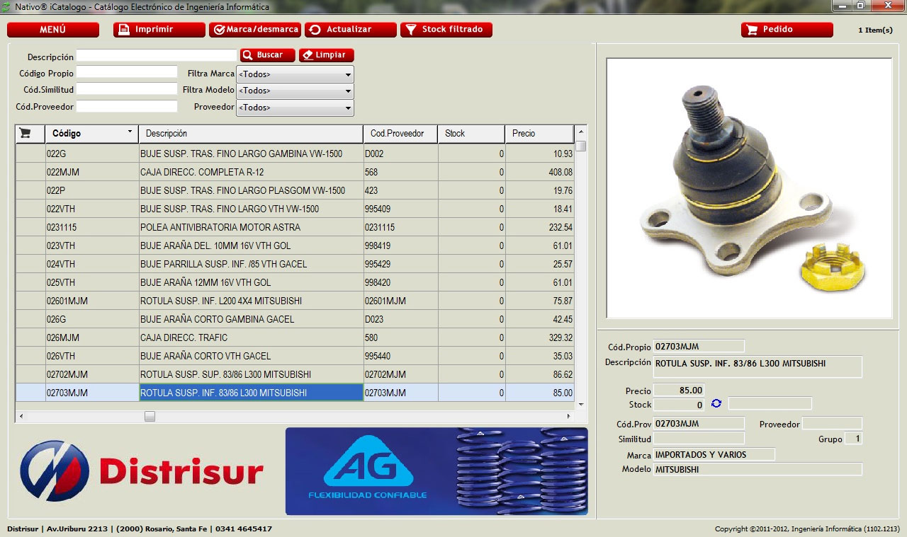 Esta consulta es configurable por operador de manera que cada uno de ellos puede dejarla seteada de acuerdo a sus necesidades normales por nota de venta y a recibir por orden de compra con posibilidad de ordenar por código, por descripción, por modelo, por similitud, etc. y de filtrar por rubro, por grupo, por marca, por cliente, por modelo, por categoría de cliente, etc.