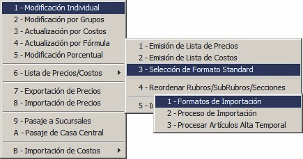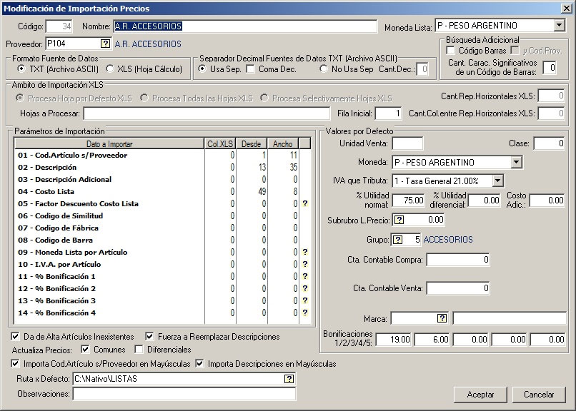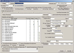 A tal fin, de acuerdo a las características de cada proveedor en los que respecta al tipo de archivo que nos manda (txt, excel, etc.) y la distribución de la información dentro del mismo, el sistema solicita que se asigne un formato de importación para cada archivo el cual guarda y utiliza cada vez que ese proveedor nos actualice sus costos.