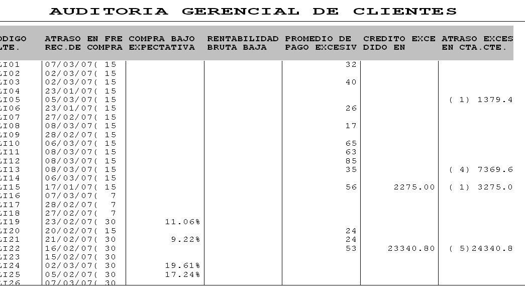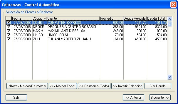 Impresión automática de cartas de reclamo de pago a clientes. Control en línea de las rentabilidades obtenidas en cada operación, operación por operación y/o renglón por renglón Control de stock de mercadería.