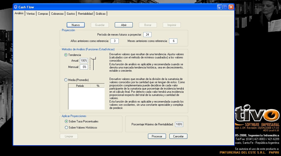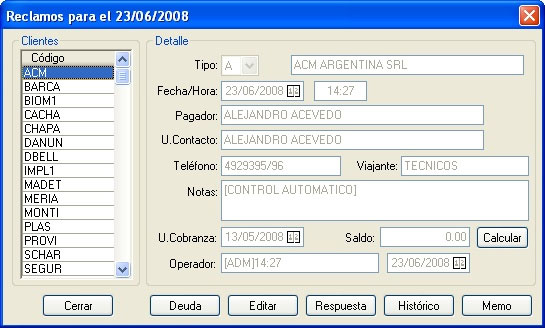 Manejo de familias de cuentas que permite facturar a las sucursales y liquidar a la administración central. Calculo del promedio de atraso en los pagos por cliente, por viajante o general, a los fines del ajuste financiero de los presupuestos.