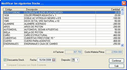 Manejo de stock en varios depósitos con transferencia entre los mismos. Manejo de doble unidad de facturación (barras/kgs, unid/kgr,etc). Cálculo automático de pies en la venta de madera. Manejo de unidades por cajas, unidad de embalaje, unidad de precio, doble unidad, etc. Manejo de varios niveles de bonificación por volumen.