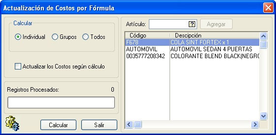 Actualización de precios individual o por grupos. Precio de venta automático definido por el costo de lista del proveedor mas el costo adicional (flete o nacionalización) menos bonificaciones comerciales mas rentabilidad, definida por artículo.