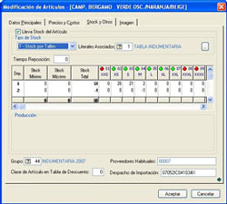 Control del stock óptimo y de reposición del mismo. Determinación automática del stock óptimo (o de seguridad) y del máximo, de c/artículo, en función del movimiento. estadístico real del mismo con correcciones estadísticas por estacionalidad.