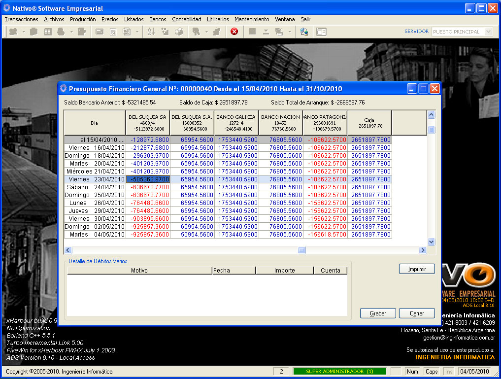 Resúmenes de cuentas corrientes y facturas impagas a proveedores con distintos tipos de selección y con la posibilidad de anexar comentarios en los movimientos.