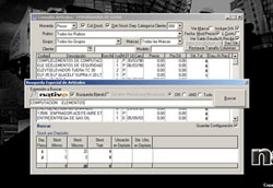 Esta consulta es configurable por operador de manera que cada uno de ellos puede dejarla seteada de acuerdo a sus necesidades normales por nota de venta y a recibir por orden de compra con posibilidad de ordenar por código, por descripción, por modelo, por similitud, etc. y de filtrar por rubro, por grupo, por marca, por cliente, por modelo, por categoría de cliente, etc.